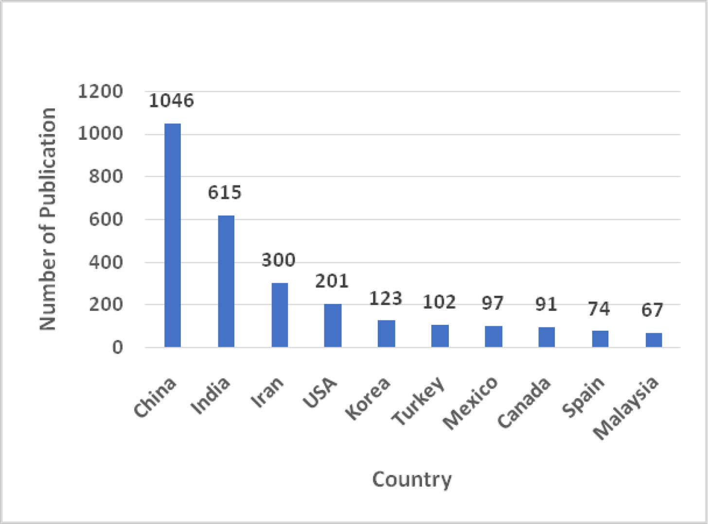 Considering number of publications top 10 countries.