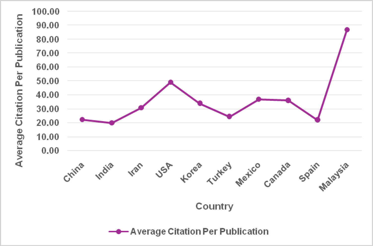 Top 10 country’s Average Citation Per Publications.