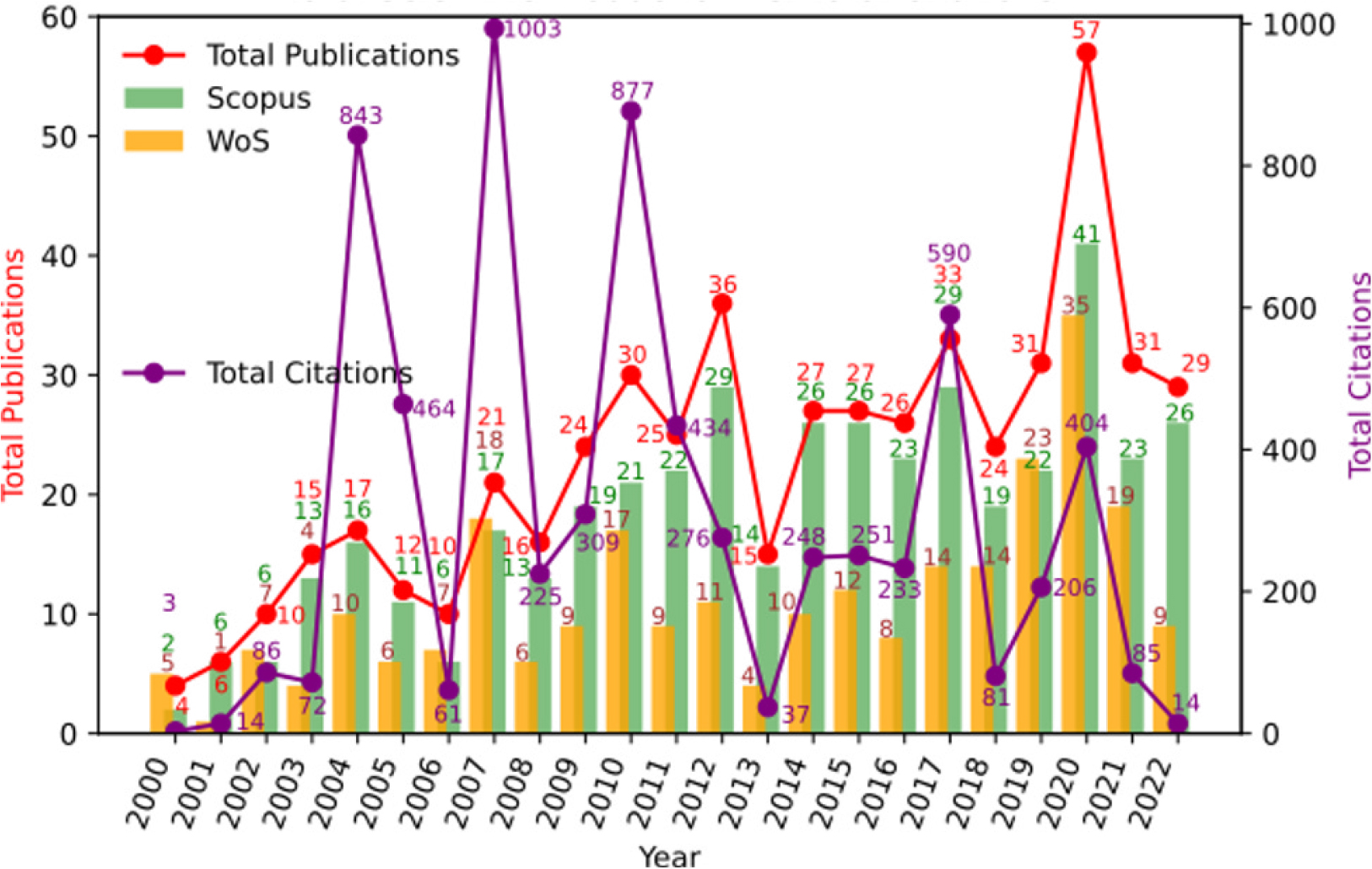 Figure 3 provides an overview of the article production pertaining to the role of the teacher-researcher over the past 22 years. It is evident that research has shown a progressive increase in the Scopus database, consistently surpassing the number of publications in WoS.
