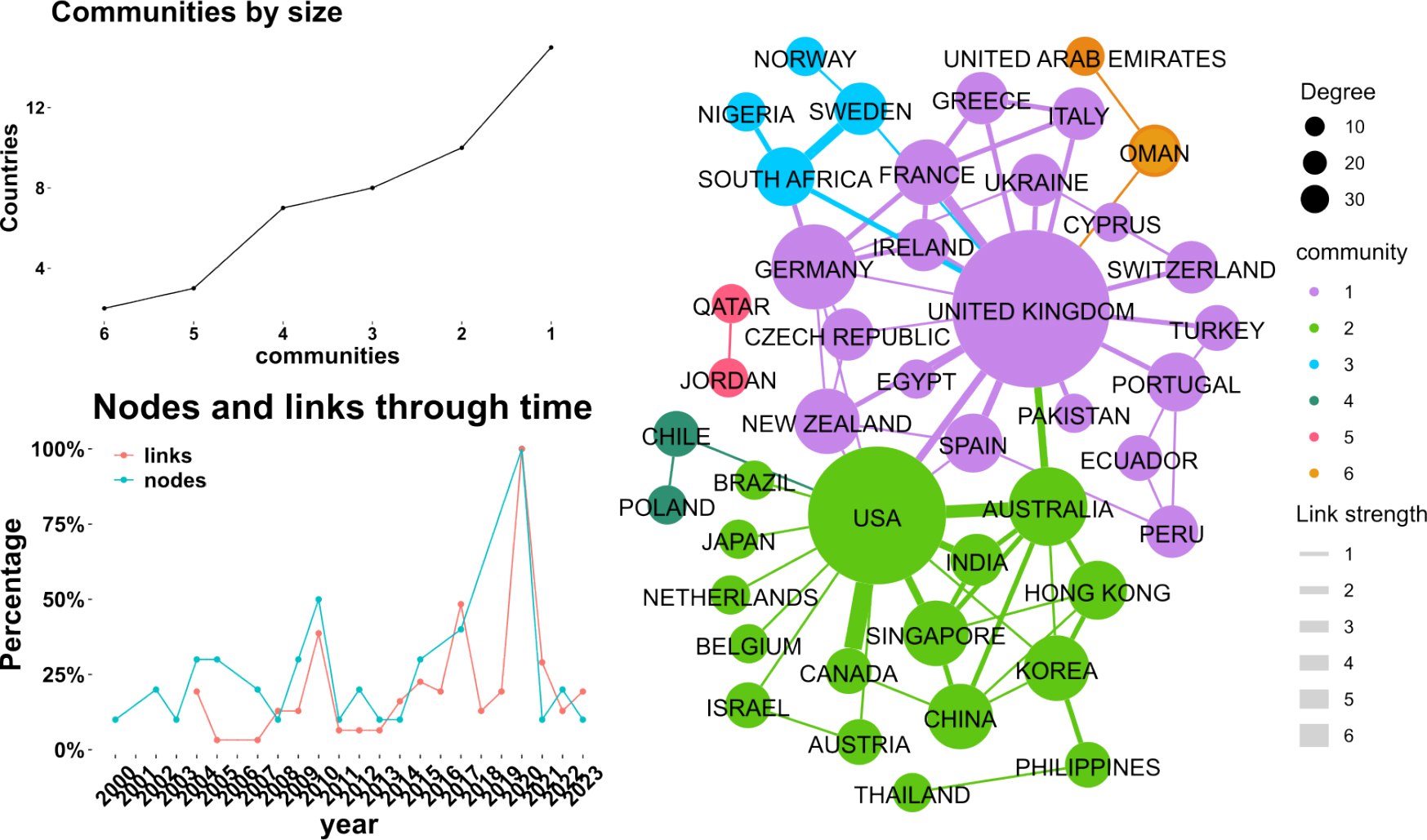 As for the United Kingdom, with 71 publications, it holds the second position behind the United States. Among these publications, 33% (24) are in the Q1 quartile, and their citations reach 22.84%. The most cited article, with 325 citations, studied the nature and significance of research, highlighting the key factors in knowledge production modes (Griffiths, 2004).