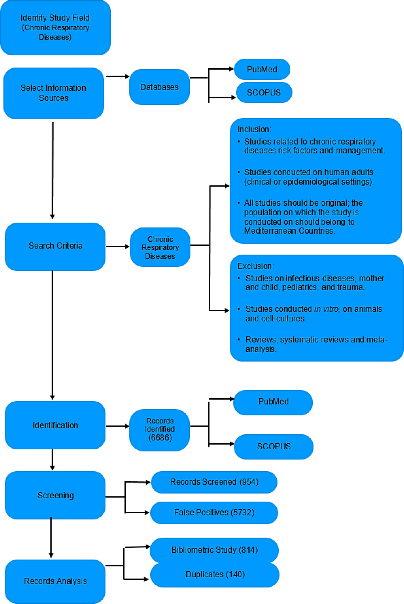 The Mediterranean region, despite its diverse cultures and climates, suffers significantly from CRDs, making it a unique area for research. However, there’s a lack of information on CRD prevalence, incidence, and burden in the Eastern Mediterranean region (Masjediet al., 2018). Given the region’s unique characteristics, a comprehensive review of the literature is necessary to identify research gaps. Thus, a bibliometric study is needed to assess the volume of research on CRDs, identify management trends, and pinpoint risk factors contributing to their rising prevalence.